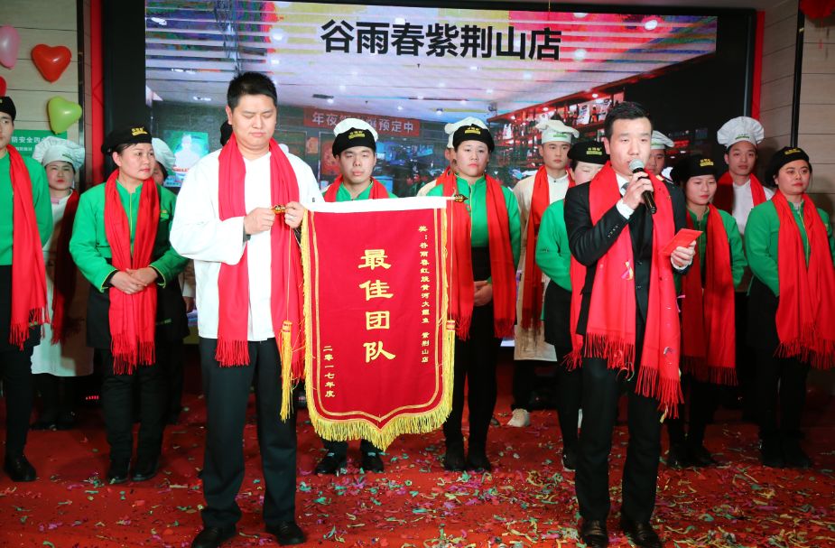 “我既然选择了做餐饮,就要干一辈子”。紫荆山店店总武家龙从余大厨手中接过“最佳团队”的锦旗时,潸然泪下。
