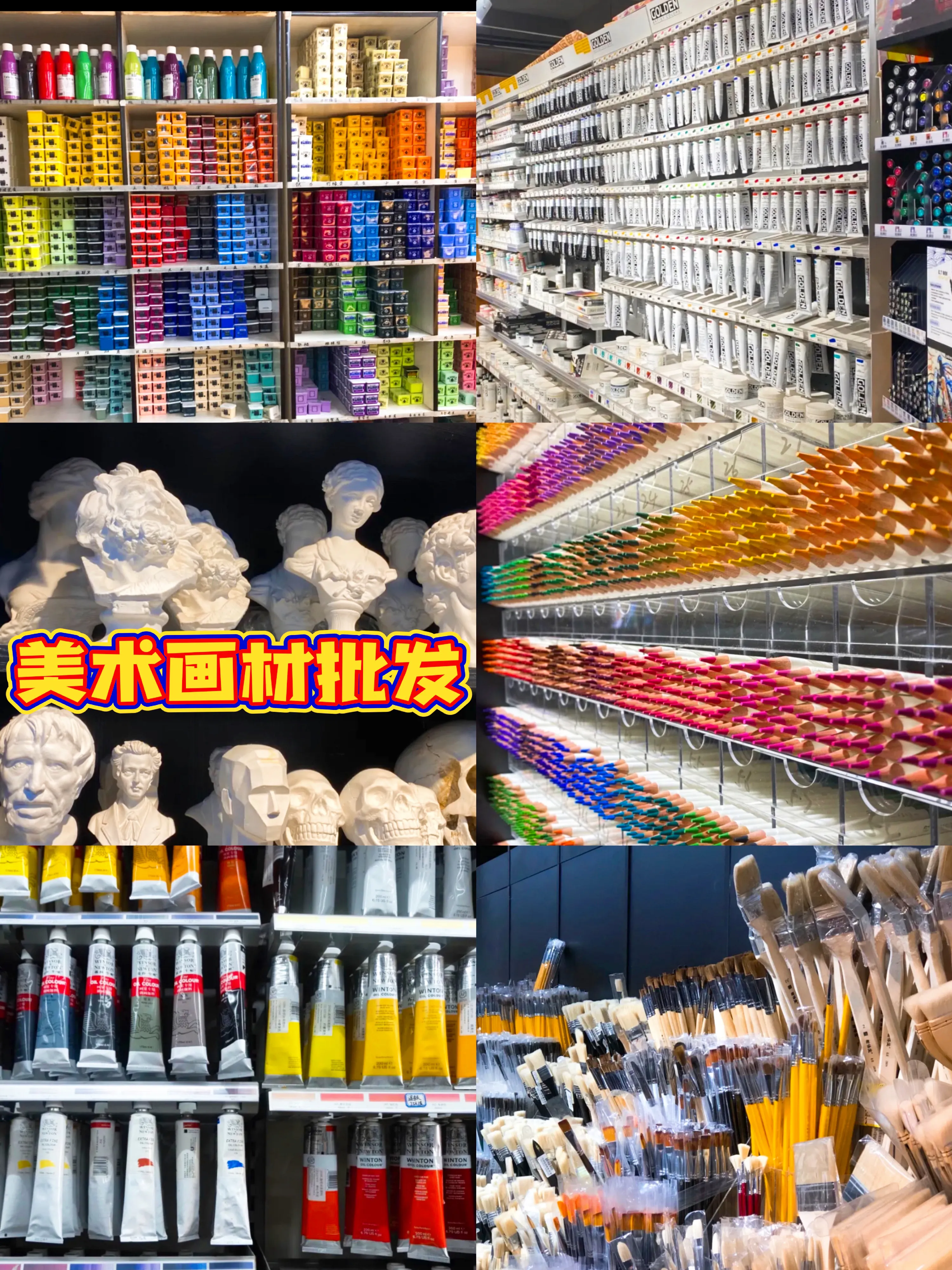 杭州美术字的天堂,东西实在是太全了性价比也高,刷子/丙烯/颜料/画架/石膏/画纸/画笔...特别是颜料的专区,颜色从浅到深治愈了强迫症,有块区域也有卖文具,竟然发现百乐和斑马有5元左右
